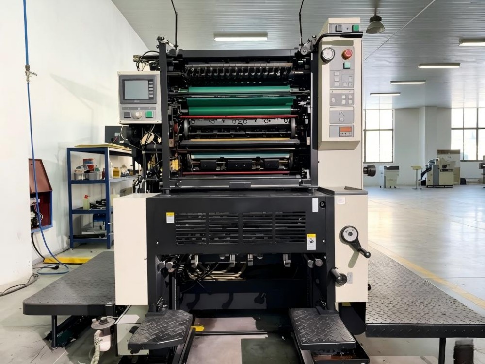 Ini adalah Mesin Cetak Offset Cetak Label Dua Warna A2. Ini dibuat untuk proses produksi kecil hingga menengah. Ini semua tentang efisiensi dan kemudahan penggunaan. Dapat mencetak dua warna dalam satu pass kertas. Itu menghemat waktu dan pekerjaan. Ini memiliki perangkat pemosisian dan pengencangan yang cepat untuk pemasangan pelat. Hal ini mengurangi perubahan seiring berjalannya waktu. Terdapat juga sistem pembersihan rol tinta semi-otomatis, yang mempercepat perubahan warna dan meringankan beban kerja operator. Pers memiliki sistem pengumpanan kertas terus menerus. Ini dipasangkan dengan meja pengisap vakum dan tiga sabuk pengangkut berputar. Pengaturan ini menangani ketebalan kertas yang berbeda dengan baik. Gripper pegas ganda mencegah kertas tergelincir. Itu adalah kunci untuk pencetakan berkecepatan tinggi. Ini juga memiliki fitur praktis. Hal-hal seperti peredam alkohol dan penyesuaian volume air otomatis. Ia juga memiliki pengiriman kertas berkualitas dengan nozel udara dan roda hisap.