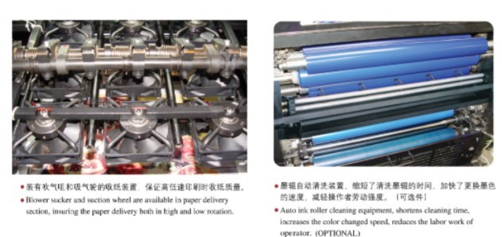 Mesin Cetak Offset Cetak Label Empat Warna A3 Besar dirancang dengan modul berkinerja tinggi, dan semuanya berkualitas tinggi—rol dan roda gigi presisi tinggi, mekanisme pengumpanan kertas yang kuat, sistem registrasi kertas presisi tinggi, dan sistem pasokan tinta yang stabil. Ini disesuaikan untuk memenuhi kebutuhan pasar akan pencetakan warna lembar potong yang berkualitas tinggi, efisien, dan terjangkau. Anda juga tidak harus terpaku pada satu ketebalan kertas saja—kertas ini dapat digunakan dengan kertas tipis (0,04 mm) hingga karton tebal (0,4 mm). Terdapat juga kontrol layar sentuh dengan antarmuka pemrograman intuitif, memungkinkan Anda menyesuaikan pengaturan dan parameter pencetakan dengan cara yang cerdas dan mudah.